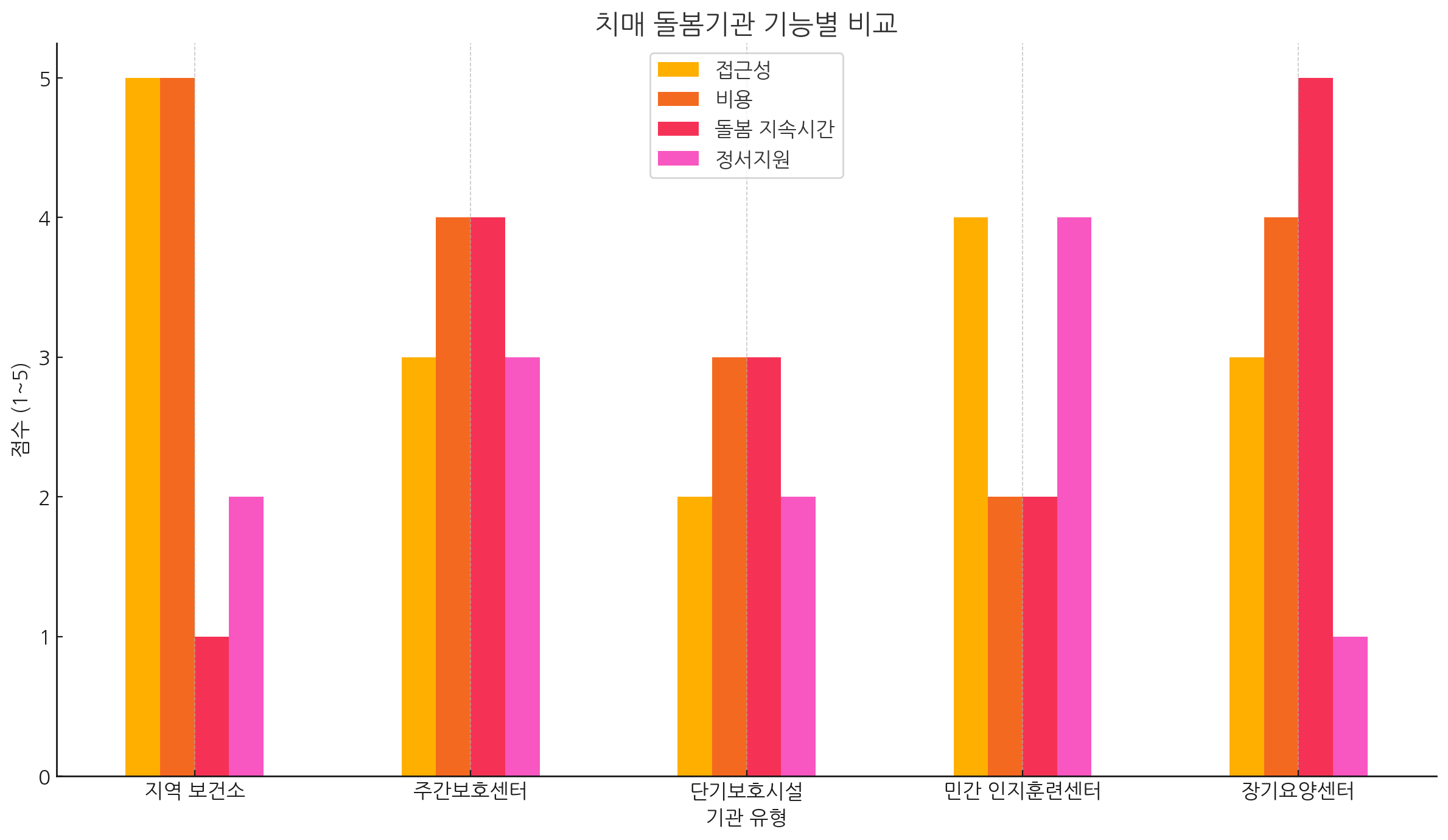 이 기관들은 단독이 아니라 목적별로 병행해서 사용해야 해요. 예를 들어 초기 진단은 보건소, 낮 돌봄은 주간보호, 가족 상담은 커뮤니티 이런 식으로요!
